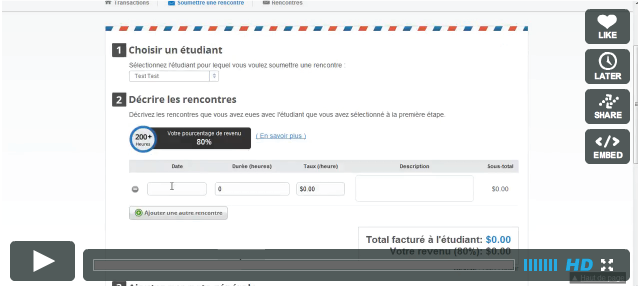 Avant de débuter vos séances de tutorat avec un client, vous devez vous assurer que ses informations de paiement sont au dossier avec Acadam. Vous ne devriez pas à avoir à expliquer le processus de paiement aux clients puisque nous leur expliquons sur le site. Lorsque les informations de paiement du client sont au dossier avec Acadam, vous pouvez vous arranger directement avec le client pour céduler votre rencontre, la durée, le lieu de rencontre, etc. Assurez-vous d’entrer vos heures de rencontres dans le système de Acadam après chaque rencontre pour que nous puissions facturer le client et vous rémunérer.