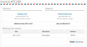 Tutors are able to create and manage their invoices through Acadam.
