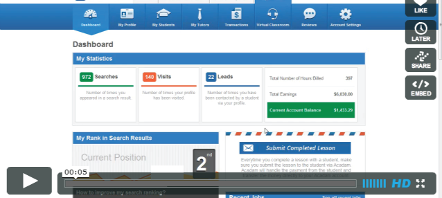 Acadam is a meeting place for students and tutors. Acadam provides a matching service and a platform to handle all monetary transactions between tutors and students.